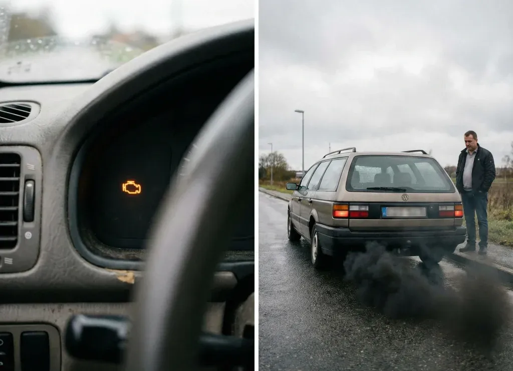 Le voyant moteur orange ou le message « système antipollution défaillant » s’allume soudainement. L’électronique de bord détecte ici un débit d’air anormal dans le circuit. C’est souvent le premier signe concret d’un encrassement déjà bien avancé.