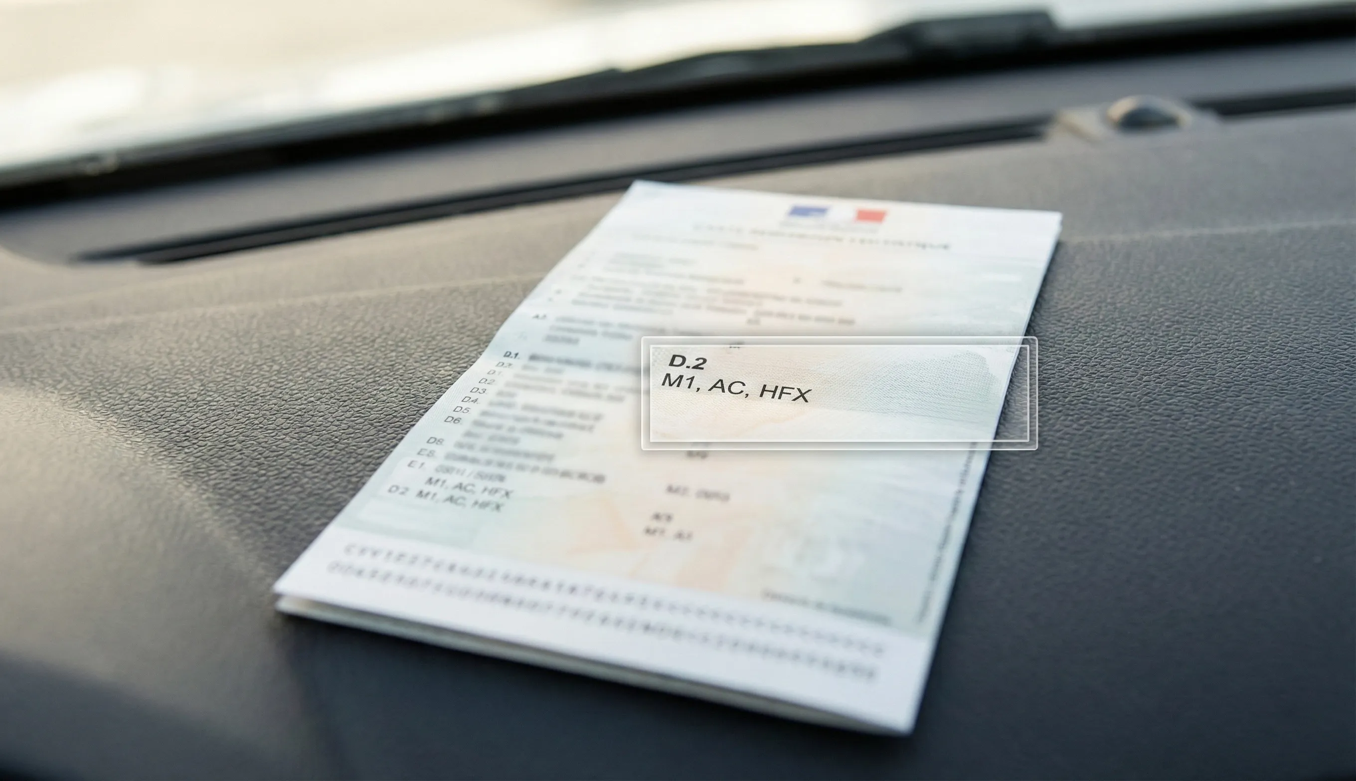 Sur les véhicules plus anciens immatriculés avant 1998, cette donnée spécifique figurait dans la rubrique « Type ». L’harmonisation européenne a par la suite standardisé cet emplacement en zone D.2 pour simplifier les démarches.