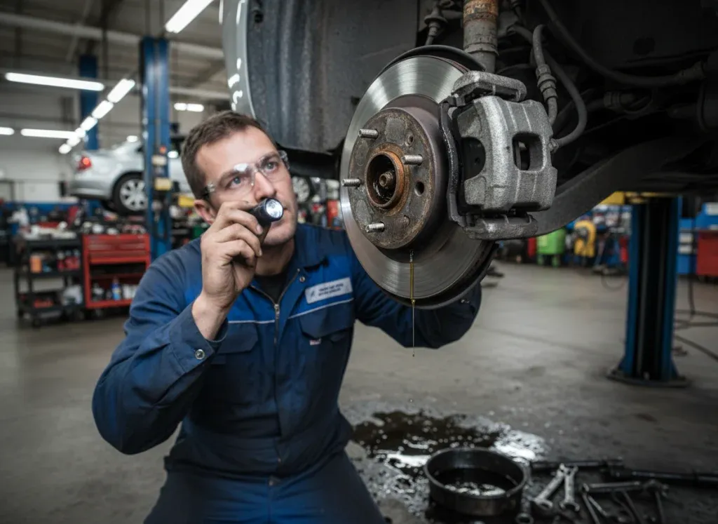 Parlons franchement du système de freinage, car c’est votre assurance vie. Une efficacité inférieure à 50 % ou l’absence totale de liquide de frein immobilise l’auto sur-le-champ. Si la marque minimale des plaquettes a disparu ou qu’une conduite menace de rompre, c’est terminé.