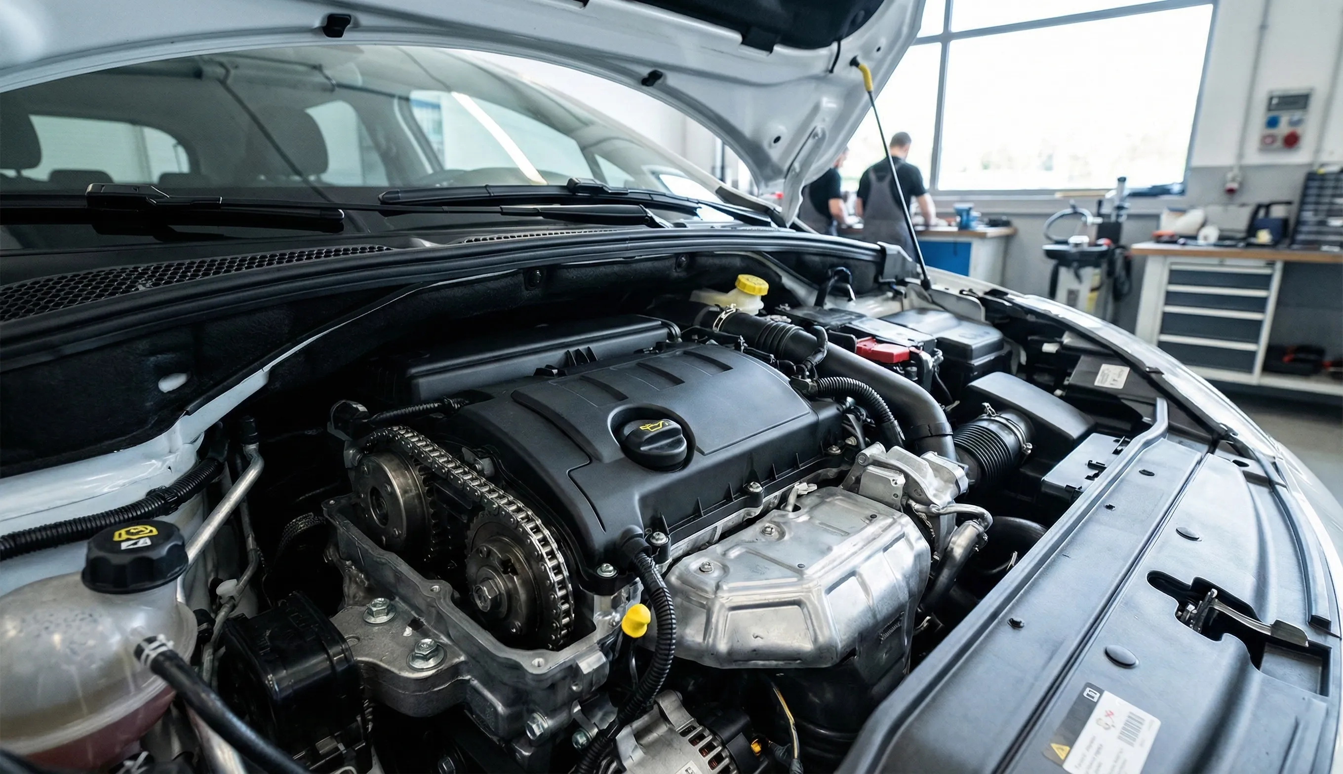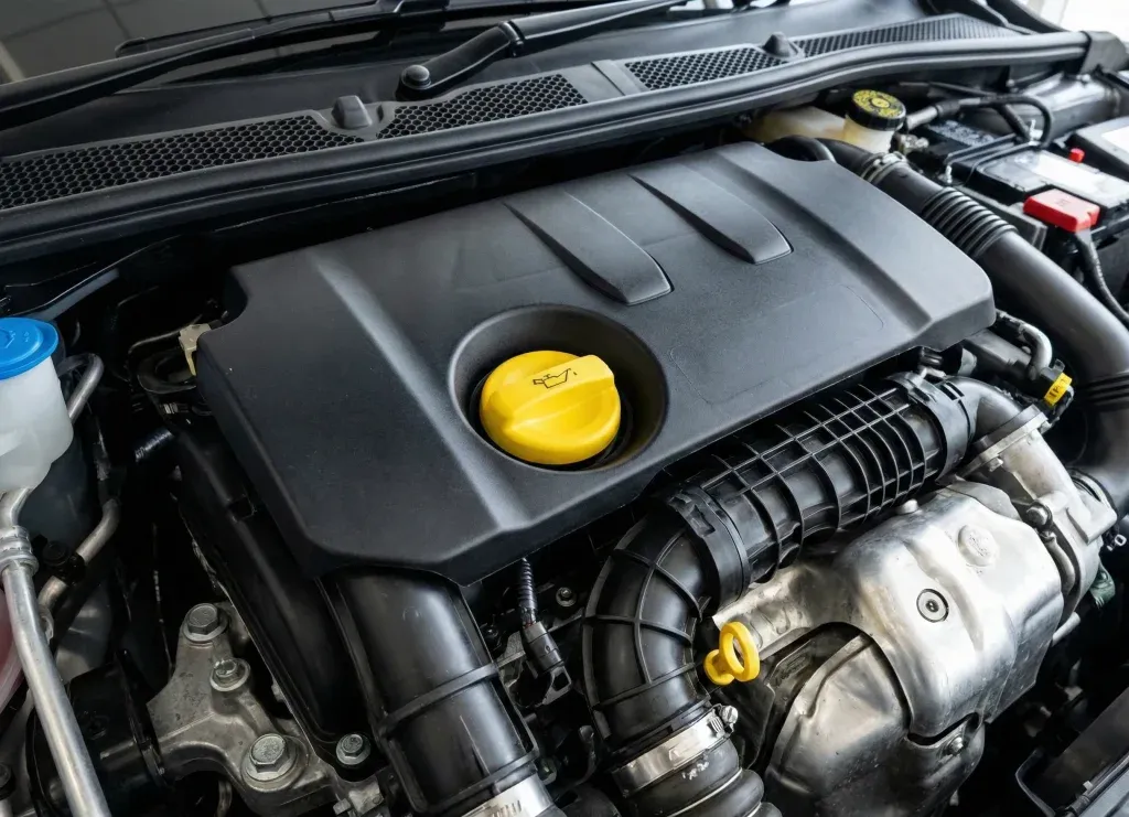 Pas besoin d’être ingénieur pour vérifier l’état de la mécanique. Ouvrez simplement le capot moteur. Regardez bien la forme du cache en plastique noir supérieur.