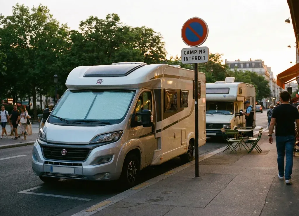 Camper signifie sortir les cales, les chaises ou l’auvent sur la voie publique. C’est strictement interdit hors zones dédiées.