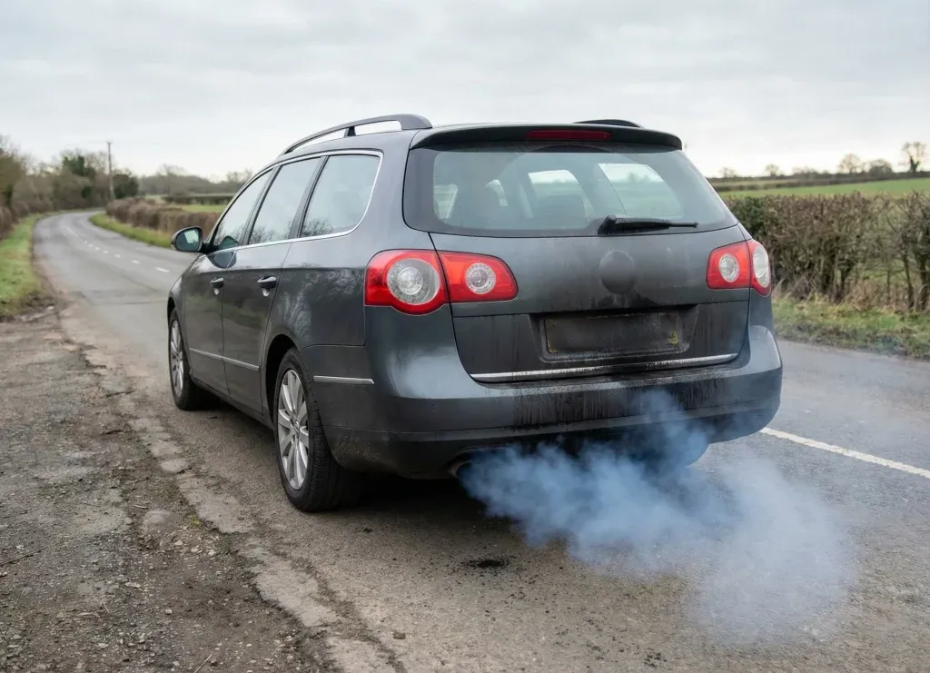 Une fumée bleue ou blanche épaisse sort du pot. Cela signifie que l’huile remonte dans les chambres de combustion. Le moteur brûle du lubrifiant au lieu du carburant. C’est un signe visuel d’alerte très clair et inquiétant.