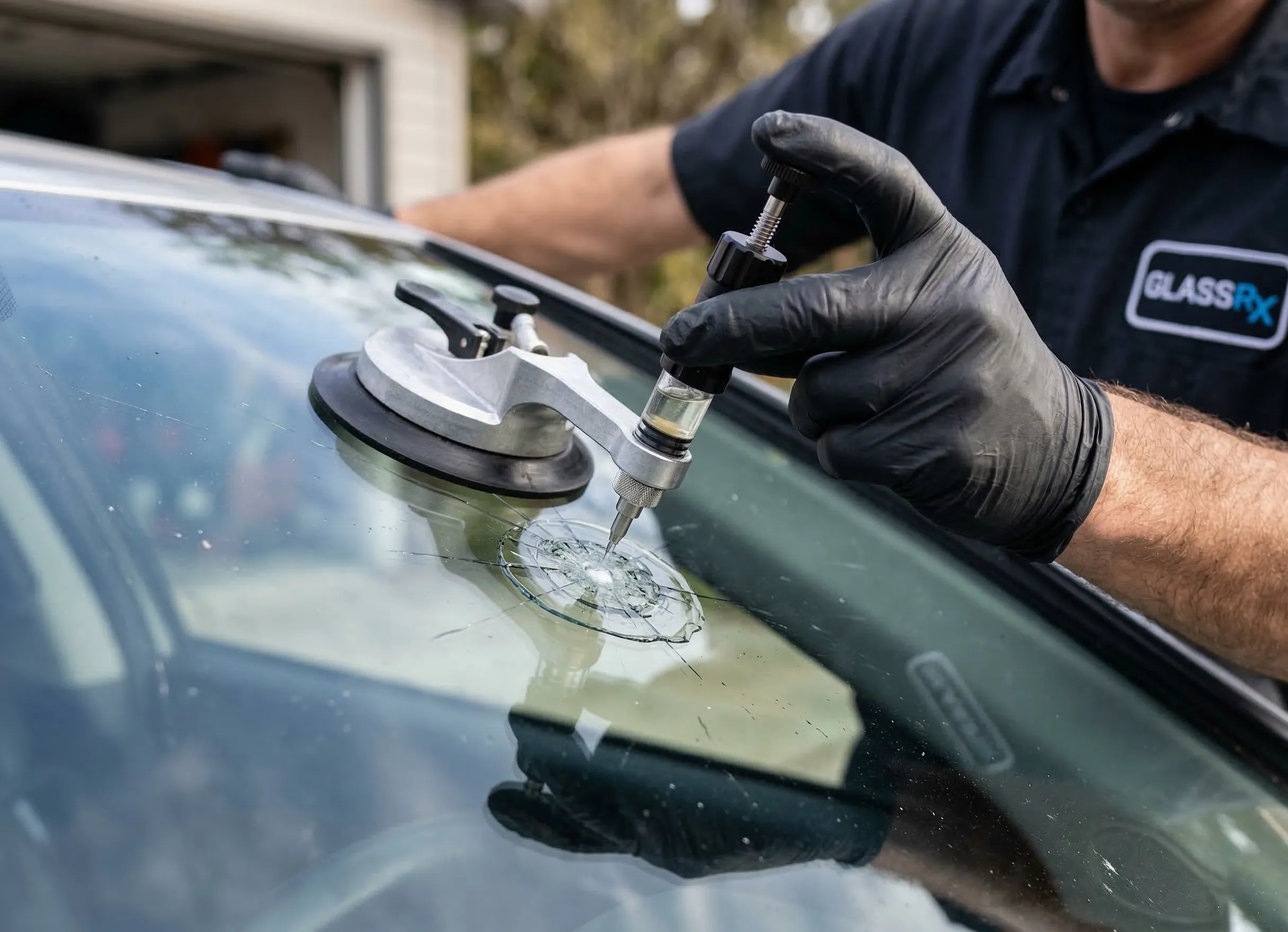 Le technicien utilise une technique précise d’injection de résine. Ce procédé ultra-rapide stabilise efficacement le verre endommagé. Une pompe à vide spécifique permet d’assurer la solidité de l’ensemble.