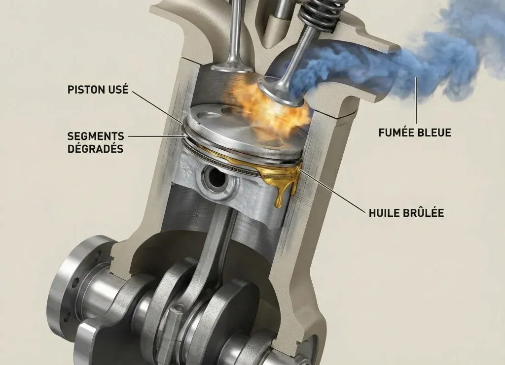 Si l’huile ne coule pas par terre, c’est qu’elle est brûlée à l’intérieur du moteur. Le lubrifiant s’infiltre là où il ne devrait pas. C’est une usure interne invisible.